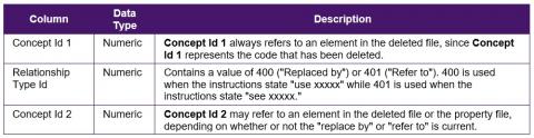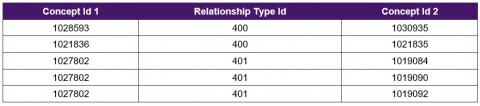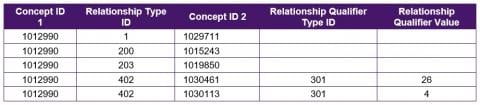 The Relationship file contains the relationships between CPT® Link concepts. The relationships include hierarchical relationships as well as links to SNOMED CT concept identifiers that are used to define CPT codes.