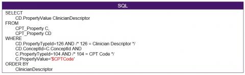 To retrieve the child concepts, run the same SQL statement but replace the $ConceptId with the CPT® Link concept you are reviewing.