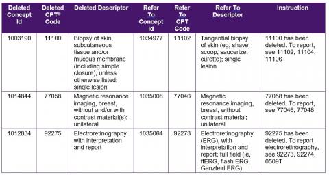 The following query can be used to retrieve replacement CPT codes for deleted CPT codes: