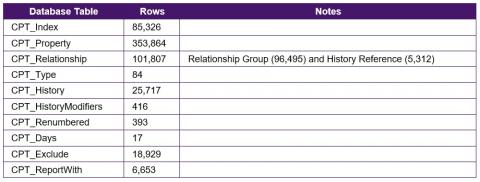 - Hierarchy – A list of CPT hierarchical relationships and descriptors.