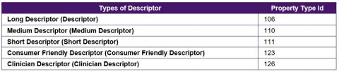 The following table shows sample rows using the suggested specification. In this example, ellipses are used in the descriptors as the descriptors are lengthy.