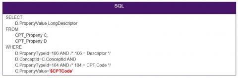 For example, when $CPTCode=10006, the previous query will retrieve the following row: